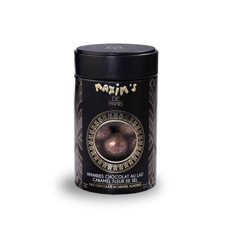 These finely roasted almonds are coated in smooth milk chocolate made with pure cocoa butter and subtly enhanced with caramel and fleur de sel. Presented in an elegant tin box, they make a perfect gift or a delightful treat to enjoy at home.