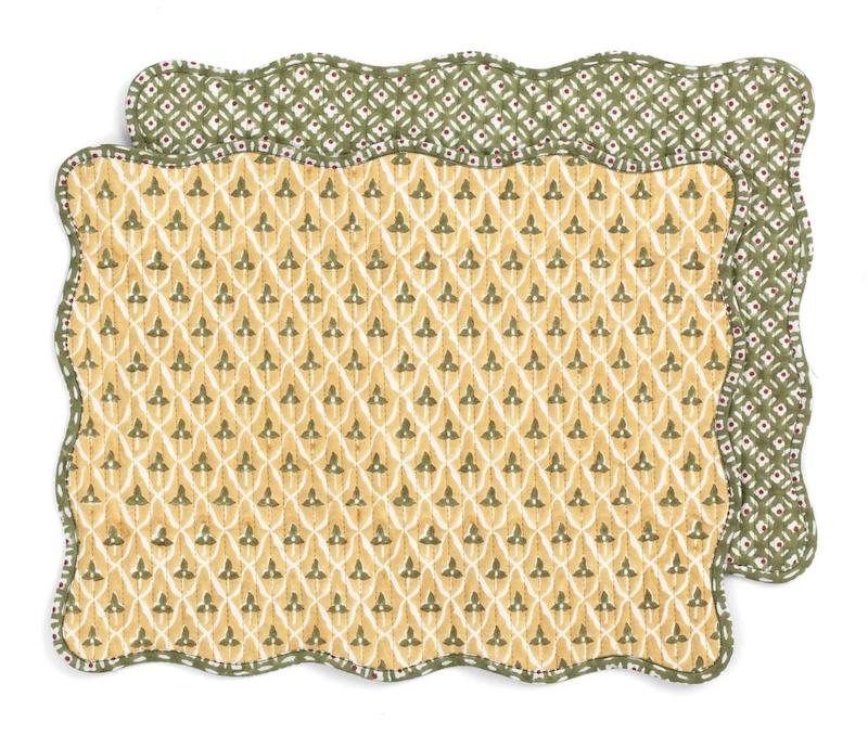 Bring warmth and color to the table with these Tulip Quilted Placemats, crafted from organic cotton and printed by hand using traditional woodblock techniques. The lively tulip pattern in green & yellow offers a cheerful yet refined presence that complements both simple and layered table settings.